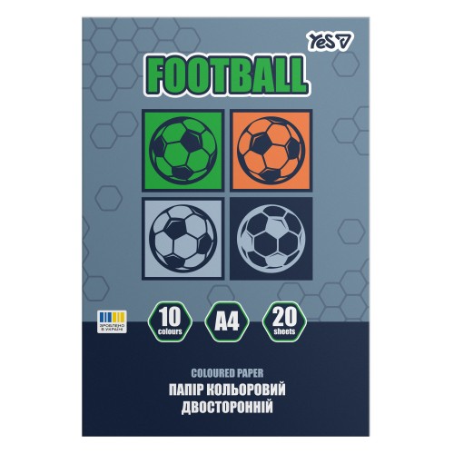 Папір кольоровий А4 20арк 10 кольорів YES 955503 Football, двосторонній на скобі (50) /955503/