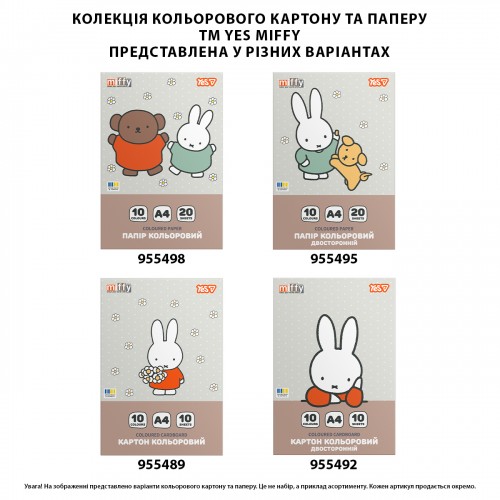 Папір кольоровий А4 20арк 10кольорів YES 955495 Miffy, двосторонній на скобі (50) /955495/