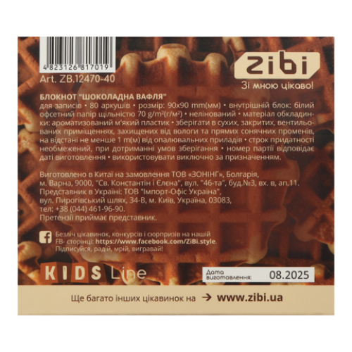 Блокнот ZiBi KIDS Line 90х90мм 80арк. CHOCOLATE WAFFLE 12470-40 ароматизований, обкладинка Soft touch (нелінований) /ZB.12470-40/