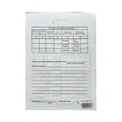 Бланк "Подорож. лист легк.авт." А5, офс.(100арк) з номер