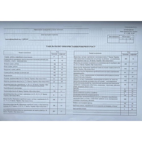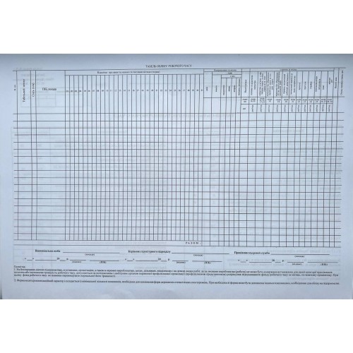 Бланк "Табель обліку робочого часу" А3, офсет, форма № П-5 (Наказ №489) (Р)