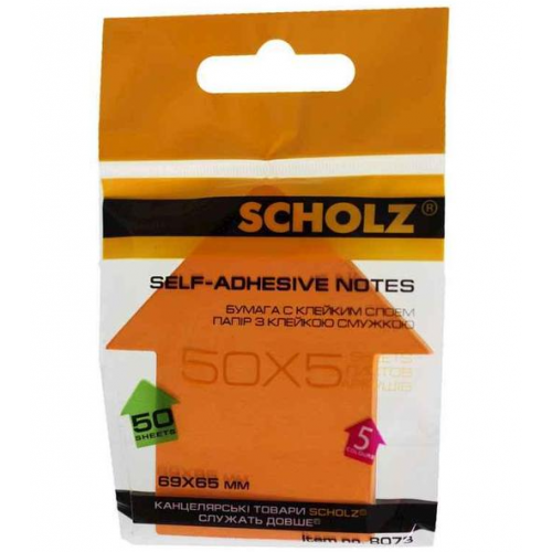 Папір для нотаток Блок для заміток з липким шаром фігурний 69х65мм Sсholz стрілка 50 аркушів асорті 8073 Scholz.