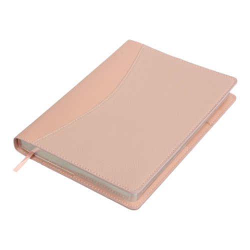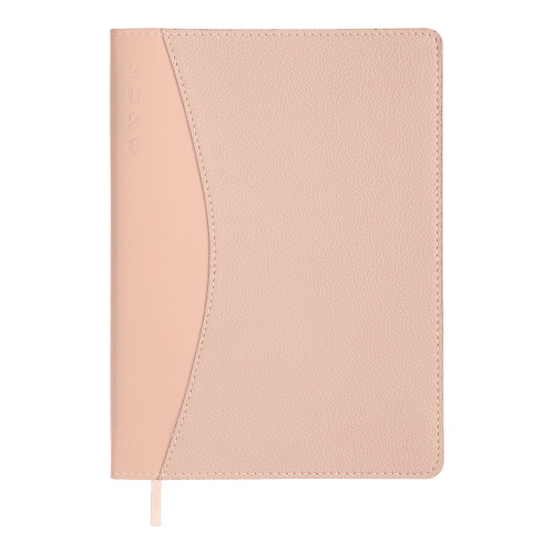 Гнучка знімна обкладинка-органайзер з штучної шкіри щоденника AURORA виконана в ніжному пастельному дизайні, що поєднує матеріал з фактурної шкіри та вставку на корінці з гладкої шкіри. Елементи оздоблення - сліпе тиснення року та декоративний шов по периметру і на стику фактур. Родзинкою дизайну є тонування сріблом зрізу внутрішнього блоку. З середини обкладинка має по кишені для візиток, нотаток тощо на передній та задній стороні, а також петельку для закріплення письмового приладдя.