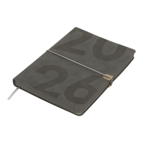 Гнучка обкладинка щоденника BEST виконана з штучної шкіри з оксамитовою фактурою типу soft-touch. Унікальною особливістю моделі є оригінальне декоративне тиснення року, виконане по всій лицьовій стороні обкладинки. Поперечна гумка надійно фіксує щоденник у закритому стані та допоможе зберегти всі важливі записи та плани. Дизайн гармонійно доповнює тонування зрізу внутрішнього блоку в колір обкладинки та металеві шильди-накладки із заглибленнями на лицьовій та задній частинах обкладинки, на яких оригінально та фіксовано лягає гумка.