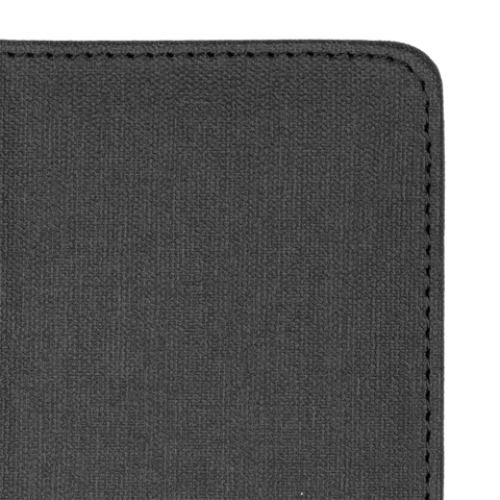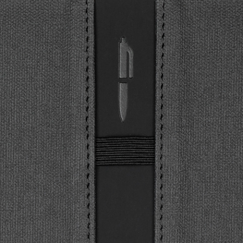 Жорстка обкладинка з штучної шкіри з поролоном щоденника ELEGANTE виконана у лаконічному та функціональному дизайні, що поєднує матеріал з фактурою тканини та вставку з гладкої шкіри. Щоденник має петлю для розміщення ручки. Елементи оздоблення - сліпе тиснення відбитку ручки, що ніби вказує на можливість закріпити її на обкладинці, та декоративний шов по периметру і на стику фактур. Гармонійно доповнює дизайн нанесення року на зрізі внутрішнього блоку.
