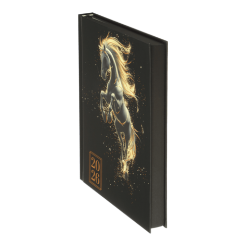Тверда поліграфічна обкладинка щоденника HORSE виконана в оригінальному стильному дизайні для року коня за східним календарем.