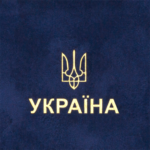 Жорсткаобкладинка зі штучної шкіри з інтенсивним оксамитовим покриттям щоденника PATRIOT VELOUR виконана у розкішному стилі з національною символікою - оздоблена тисненням Тризуба та напису УКРАЇНА золотою фольгою. Дві функціональні шильди на лицьовій та зворотній стороні обкладинки з поглибленнями для поперечної гумки забезпечують зручну та надійну фіксацію щоденника в закритому стані. Гармонійно доповнює та збагачує дизайн щоденника тонований золотом зріз внутрішнього блоку з нанесенням року.