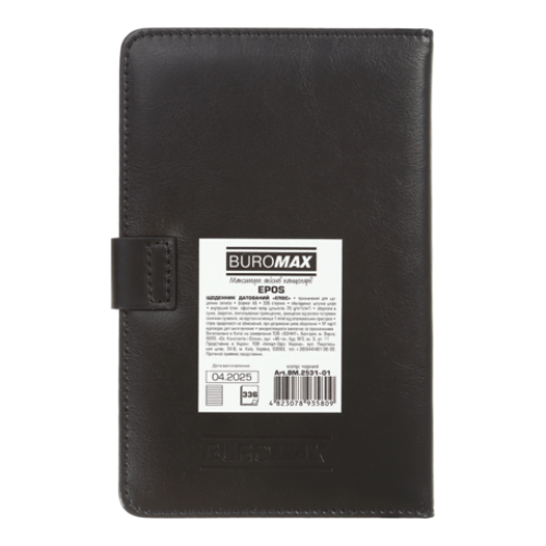 Щоденник BUROMAX - це завжди широкий вибір різноманітних обкладинок, фактур, розмірів та кольорів. Ми знайдемо підхід до серця кожного покупця!  Жорстка обкладинка зі штучної шкіри з поролоном щоденника EPOS виконана в елегантному діловому стилі. Щоденник фіксується в закритому положенні на акуратний хлястик, який виглядає презентабельно, підкреслюючи статус власника. На корінці методом сліпого тиснення нанесений рік. Для додаткової зручності модель оснащена клапаном із відділеннями для пластикових та візитних карток, записок та ін. Формат А6 336 сторінок Внутрішній блок: офсетний папір кремового кольору щільністю 70 г/м² Закладка-лясе в колір обкладинки Перфоровані куточки аркушів Друк блоку в 2 кольори: сірий і бордовий Дві мови блоку: українська, англійська Мапи України та Європи на форзацах Індивідуальна упаковка: картонна коробка Структура внутрішнього блоку: Сторінка для внесення особистої інформації Календарі на 2025 - 2028 роки Планінг на 2026 рік Інформаційно-довідковий блок: національні, релігійні, професійні свята та пам'ятні дати, знаки зодіаку, телефонні коди мобільних операторів та обласних центрів України, літерні автомобільні коди країн, таблиця відстаней між обласними центрами України, довідник систем вимірювання, міжнародні знаки відповідності, знаки догляду за одягом Датована сторінка на кожен день року з організатором часу від 7:00 до 21:00, календарем на поточний/наступний місяць, позначенням дня тижня, знаку зодіаку, іменинників Алфавітна книга для внесення контактів Щоденник BUROMAX - незамінний помічник в плануванні Вашого робочого дня, перевірений часом! На цій моделі щоденника можливе тиснення сліпим методом та методом фольгування.