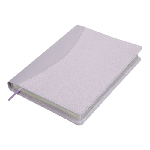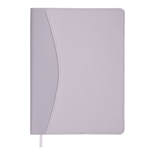 Гнучка знімна обкладинка-органайзер з штучної шкіри щоденника AURORA виконана в ніжному пастельному дизайні, що поєднує матеріал з фактурної шкіри та вставку на корінці з гладкої шкіри. Елементи оздоблення - сліпе тиснення року та декоративний шов по периметру і на стику фактур. Родзинкою дизайну є тонування сріблом зрізу внутрішнього блоку. З середини обкладинка має по кишені для візиток, нотаток тощо на передній та задній стороні, а також петельку для закріплення письмового приладдя.