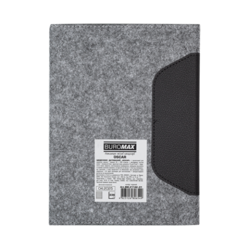 Щоденники BUROMAX - це завжди широкий вибір самих різних обкладинок, фактур, розмірів і кольорів. Ми знайдемо підхід до серця кожного покупця! Жорстка знімна обкладинка щоденника OSCAR виготовлена з комбінації штучної шкіри та фетру, виконана у формі портмоне – має глибокий клапан, який застібається на лицьовій стороні на кнопку. Гармонійно доповнює дизайн декоративний шов по периметру і на стику фактур та тонований в сірий колір зріз внутрішнього блоку. Формат А5 336 сторінок Внутрішній блок: офсетний папір кремового кольору щільністю 70 г/м² Закладка-лясе в колір обкладинки Перфоровані куточки аркушів Друк блоку в 2 кольори: сірий і бордовий Дві мови блоку: українська, англійська Форзаци чорного кольору Індивідуальна упаковка: картонна коробка Структура внутрішнього блоку: Сторінка для внесення особистої інформації Календарі на 2025 - 2028 роки Планінг на 2026 рік Інформаційно-довідковий блок: національні, релігійні, професійні свята та пам'ятні дати, знаки зодіаку, телефонні коди мобільних операторів та обласних центрів України, літерні автомобільні коди країн, таблиця відстаней між обласними центрами України, довідник систем вимірювання, міжнародні знаки відповідності, знаки догляду за одягом Датована сторінка на кожен день року з організатором часу від 7:00 до 21:00, календарем на поточний/наступний місяць, позначенням дня тижня, знаку зодіаку, іменинників Алфавітна книга для внесення контактів Щоденник BUROMAX формату А5 - це вибір, перевірений часом, найпопулярніший формат для незамінного помічника в плануванні Вашого робочого дня! На цій моделі щоденника можливе тиснення як сліпим методом так і методом фольгування.