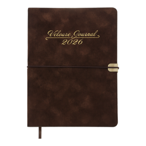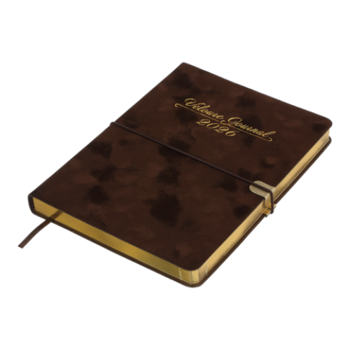 Гнучка обкладинка щоденника VELOUR виконана з штучної шкіри з виразним оксамитовим покриттям. Дві функціональні шильди на лицьовій та зворотній стороні обкладинки з поглибленнями для поперечної гумки забезпечують зручну та надійну фіксацію щоденника в закритому стані. Дизайн гармонійно доповнює та збагачує тонований золотим кольором зріз внутрішнього блоку та тиснення золотою фольгою року і напису на лицьовій стороні обкладинки.