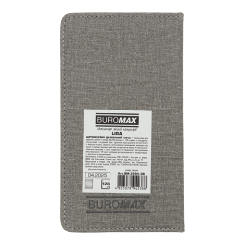 Щотижневик датований 2026 BUROMAX кишеньковий LIGA 2894-09 сірий (85*153мм) /BM.2894-09/