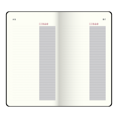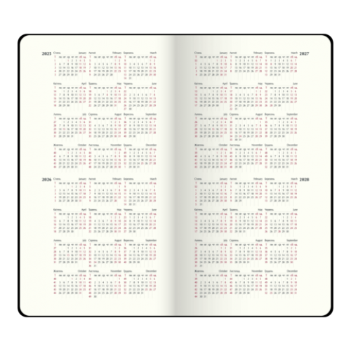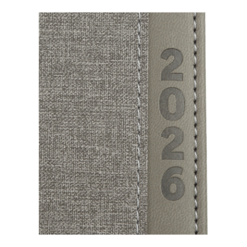 Жорстка обкладинка щотижневика LIGA виготовлена з дуже приємної на дотик штучної шкіри з фактурою натурального льону, з поролоном. Оригінальний акцент додає щоденнику вставка зі штучної шкіри з фактурою натуральної шкіри та зі сліпим тисненням року на лицьовій стороні обкладинки, а також шов по периметру обкладинки та на стику матеріалів. Кишеньковий розмір щотижневика робить його постійним супутником свого власника, він не займе багато місця навіть у маленькій сумці, може вміститися в кишеню і завжди буде під рукою.