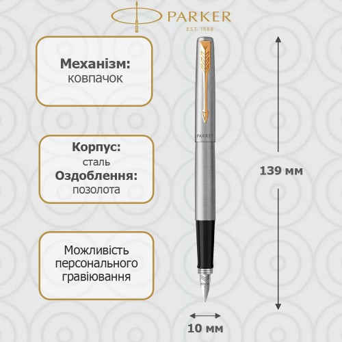 Parker JOTTER 17 SS GT FP M 16 012 - це пишучий інструмент, що випромінює непідвладну часу елегантність і вишуканість. Ця ручка з корпусом з нержавіючої сталі та позолоченими деталями є ідеальним поєднанням стилю та функціональності.