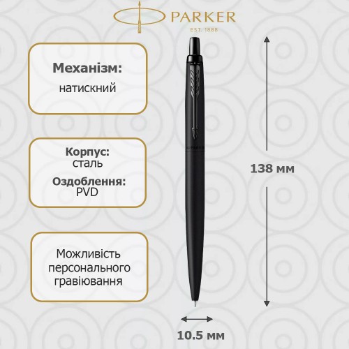 Parker JOTTER 17 XL Monochrome Black BT BP 12 432 - кулькова ручка, що входить до колекції Parker Jotter XL. Ручка має гладкий та сучасний дизайн з корпусом зі сталі та чорним матовим PVD покриттям.