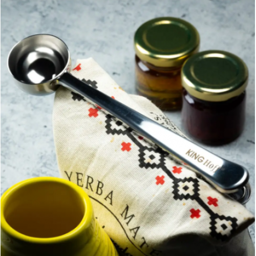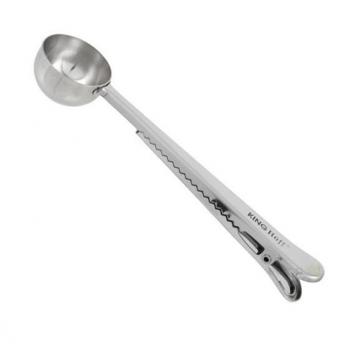 Ложка для кави з кліпсою KingHoff KH-1274 Характеристика: Довжина: 17,5 см, Ширина: 3,5 см. Матеріал: нержавіюча сталь Вбудований затискач дає змогу щільно закривати кавовий пакет, щоб він не провітрювався Виробник: KingHoff, Польща