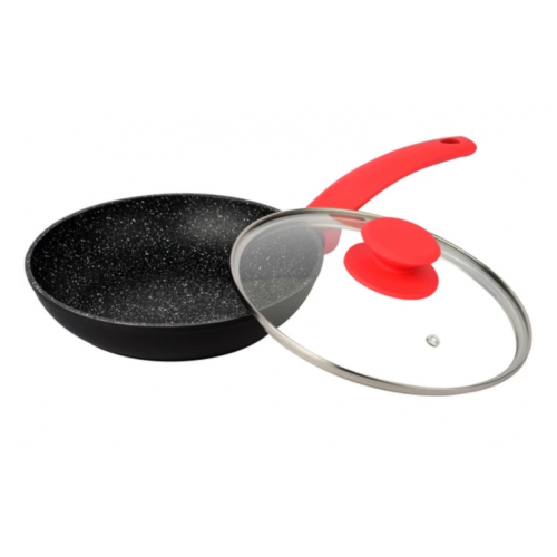 Сковорода зі скляною кришкою з антипригарними властивостями, вона зносостійка і довговічна. Нова система пористого антипригарного покриття дозволяє просмажувати продукти до хрусткої скоринки. Стильна і зручна і довговічна сковорода з гранітним покриттям знайде своє місце на будь-якій кухні. Перед першим використанням вимийте посуд миючим засобом, промийте, просушіть. Забороняється використовувати металеві губки, а також засоби, що містять абразивні добавки та хлор. Для миття посуду можна використовувати посудомийну машину та ручне миття.