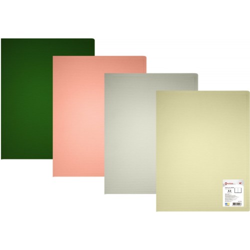 Папка А4 з 20 файлами, OPTIMA, 600 мкм, фактура "СМУГА", кольори - кораловий, какао, хакі, сірий.