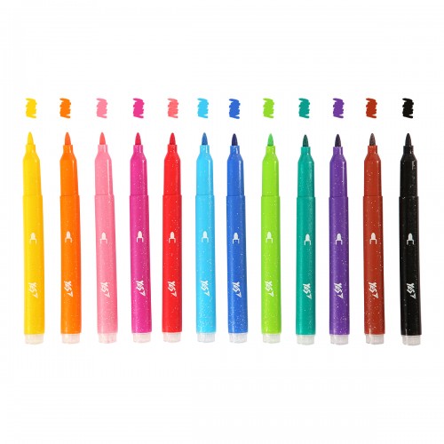 Фломастери торгової марки YES призначені для малювання в дитячому садку, школі чи вдома. Даний набір складений з дванадцяти яскравих кольорів з глітером. Він чудово впорається з реалізацією найсміливішої дитячої фантазії.
