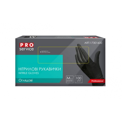 Рукавички гумові PROService 100шт. нітрилові неопудрені нестерильні, M (середні) чорні /17301600/