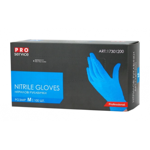 Рукавички гумові PROService 100шт. нітрилові неопудрені нестерильні, M (середні) св.-сині /17301200/