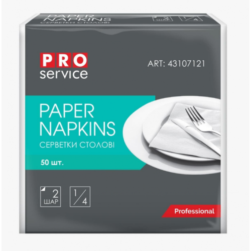 Серветки паперові стол. PROService 33*33см 50шт. 2-шар. білі (30)