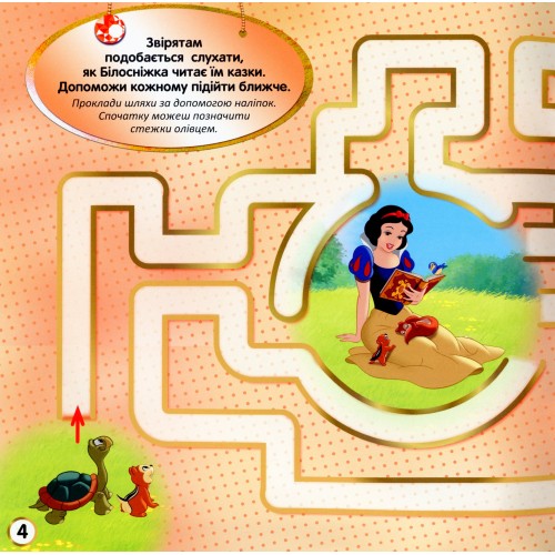 Поринь у захопливий світ лабіринтів разом із персонажами Disney-студії! Допоможи улюбленим героям знайти вихід із лабіринтів за допомогою яскравих наліпок. Приєднуйся, твої улюбленці не прокладуть шлях без твоєї допомоги!