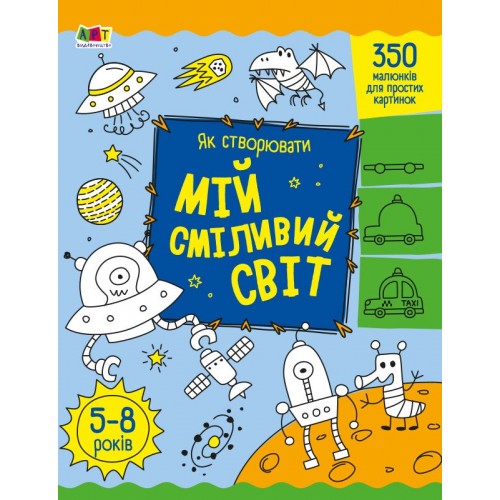 Машини і роботи, монстри і дракони, космос і супергерої, морські тварини і пірати, індіанці і вігвами. Усе це оживе на ваших малюнках, щойно ви почнете створювати ваш сміливий світ із нашим творчим збірником. А ще у малювальному зошиті "Як створювати мій сміливий світ" ви дізнаєтесь як малювати прості малюнки, як складати із окремих малюнків картинки, як перетворювати лінію на дракона чи монстрика, як придумувати роботів, як малювати супергероїв і ще багато "Як" та 350 малюнків для простих картинок.