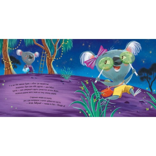 Книжка для сімейного читання. Це історія про маленьку коалу Лілі, яка дуже любить свою бабусю. Якось вона дізналася, що той, кого обіймають, почувається щасливим. Лілі дуже хотіла, щоб бабуся була щаслива, але маленька коала так рідко гостювала у неї. Поки онучки не буде поруч, хто ж обійматиме бабусю?