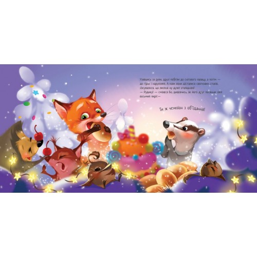 Це історія про маленьке лисеня, яке дуже хотіло навчитися літати. Його мрія може здійснитися, якщо загадати бажання у свято на Галявині чудес. Але в той час, коли всі в лісі загадують бажання, лисеня зустрічає білченя, яке потрапило в біду. Що ж робити? Відмовитися від мрії та допомогти білченяті чи прагнути свого? Як вчинить лисеня?