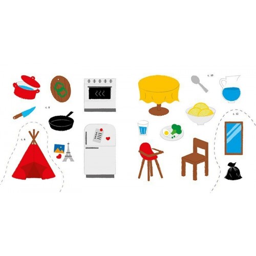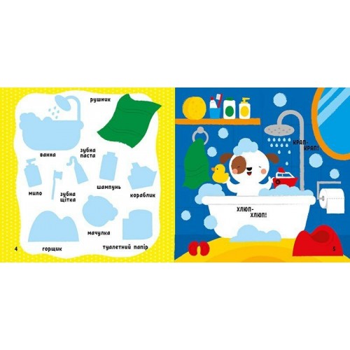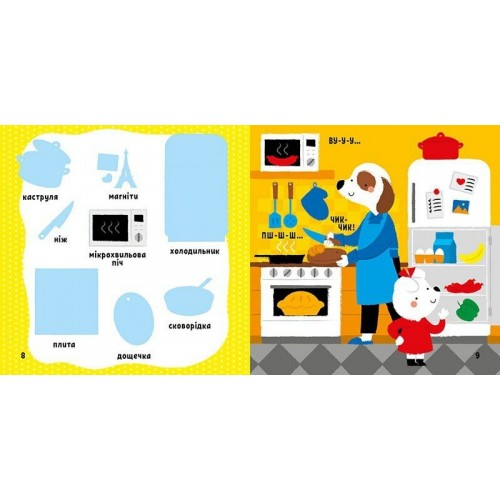 «Чух-чух!» — їде іграшковий паровозик дитячою кімнатою. «Крап-крап» — крапає вода у душі. «Пш-ш-ш» — шкварчить щось смачненьке на кухні. Дізнавайтесь назви предметів в оселі зі сторінок книжки «Мій дім». На яскравих ілюстраціях ви знайдете підписи — поповнюйте словниковий запас малюка. А також тіні-силуети для наліпок — розвивайте увагу та тренуйте дрібну моторику. Нехай процес навчання та гри минає весело й цікаво!