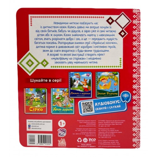 Книга Українські казочки, Котигорошко - Вирушайте у героїчну пригоду з книгою "Українські казочки: Котигорошко"! Ця книга для дітей від 3 років розповідає про сміливого героя через яскраві ілюстрації та захоплюючу історію. Вона розвиває уяву і знайомить із народними традиціями. Безпечна та барвиста, ідеальна для дошкільнят. Вибирайте на нашому сайті та подаруйте дитині радість героїчних казок!