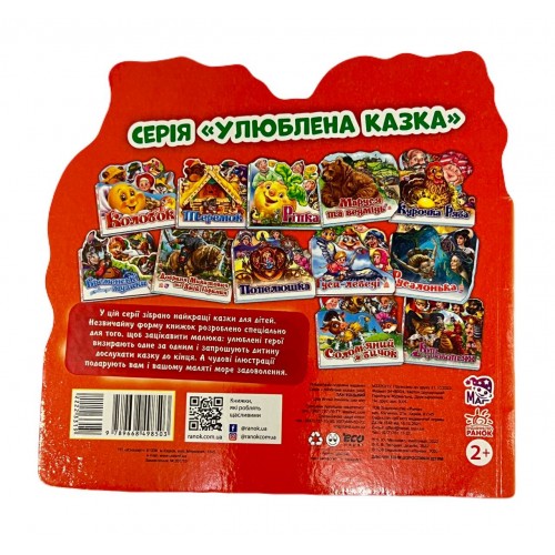 У цій серії зібрано найкращі казки для дітей. Незвичайну форму книжок розроблено спеціально для того, щоб зацікавити малюка: улюблені герої визирають одне за одним і запрошують дитину дослухати казку до кінця. А чудові ілюстрації подарують вам і вашому маляті море задоволення.