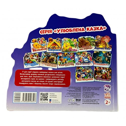 У цій серії зібрано найкращі казки для дітей. Незвичайну форму книжок розроблено спеціально для того, щоб зацікавити малюка: улюблені герої визирають одне за одним і запрошують дитину дослухати казку до кінця. А чудові ілюстрації подарують вам і вашому маляті море задоволення.