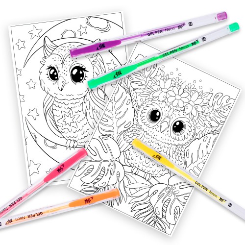 Розмальовка А4 ТМ 1Вересня "Совенята", 12 сторінок та 5 ручок гелевих ТМ Yes "Neon".
