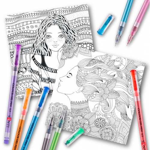 Розмальовка SANTI антистрес "Чарівні дівчата" та 8 гелевих ручок ТМ SANTI Cristal.