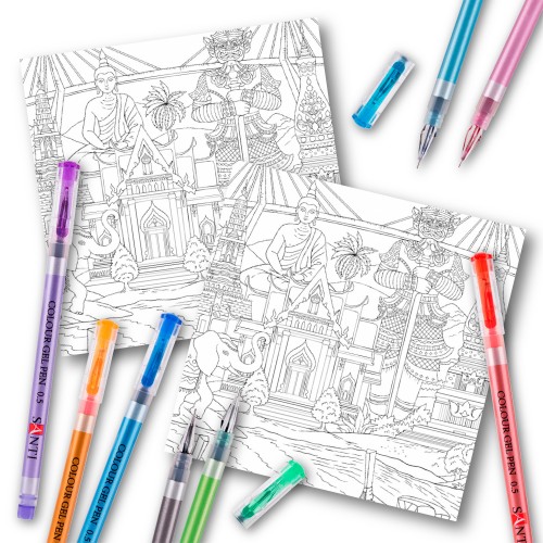 Розмальовка SANTI антистрес "Подорож країнами" та 8 гелевих ручок ТМ SANTI Cristal.