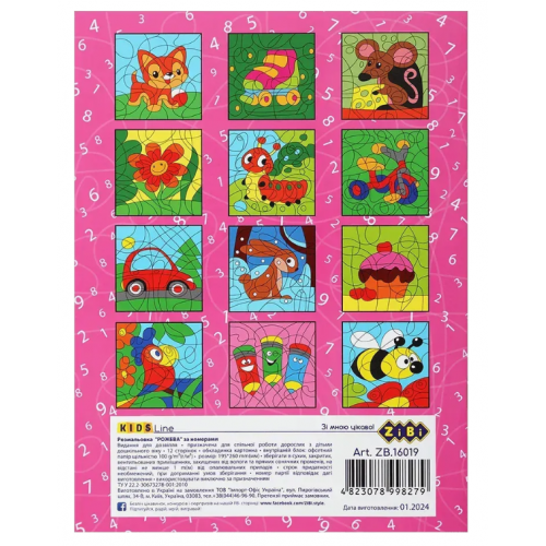Розмальовка ZiBi KIDS Line 16019 "За номерами, рожева" 12 стор. /ZB.16019/