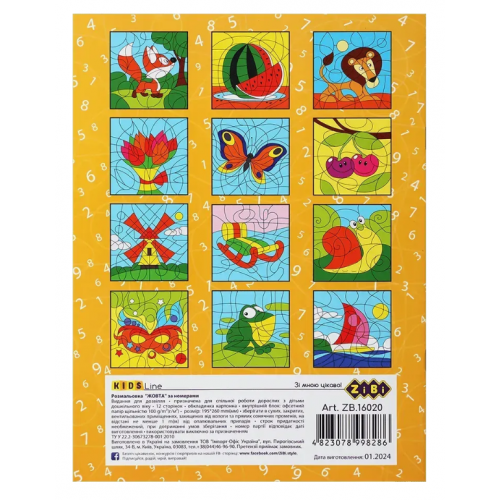 Розмальовка ZiBi KIDS Line 16020 "За номерами, жовта" 12 стор. /ZB.16020/