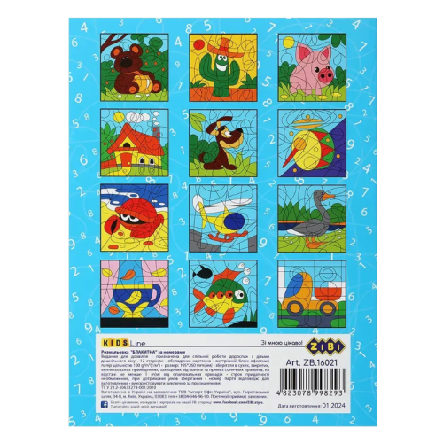 Розмальовка ZiBi KIDS Line 16021 "За номерами, блакитна" 12 стор. /ZB.16021/