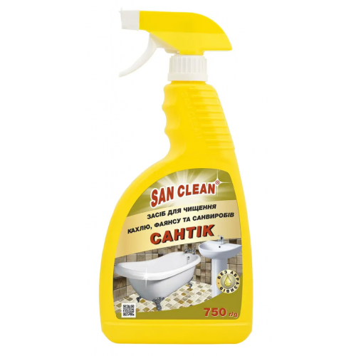 Засіб очищувальний San Clean Сантик для сантехніки - ваш надійний помічник у боротьбі з вапняним нальотом, іржею та забрудненнями. Забезпечує ідеальну чистоту, блиск поверхонь та ефективну дезінфекцію, залишаючи приємний свіжий аромат. Підходить для плитки, кераміки, змішувачів та сантехніки. Простий у використанні та економічний. Оберіть якість і зручність – зробіть ваш дім бездоганно чистим.
