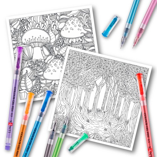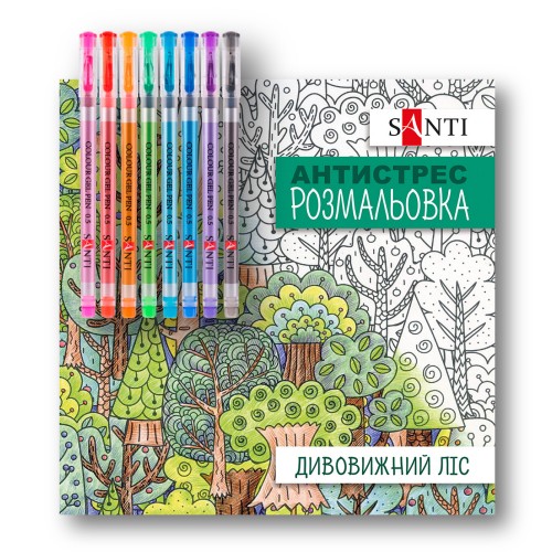Розмальовка SANTI антистрес "Дивовижний ліс" та 8 гелевих ручок ТМ SANTI Cristal.