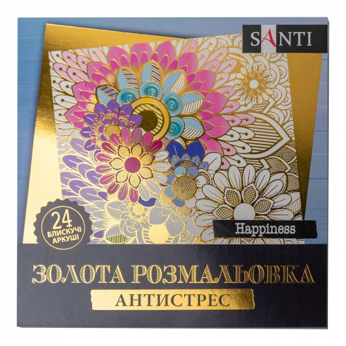 Розмальовка-антистрес SANTI "Happiness", 24арк. золота /742950/