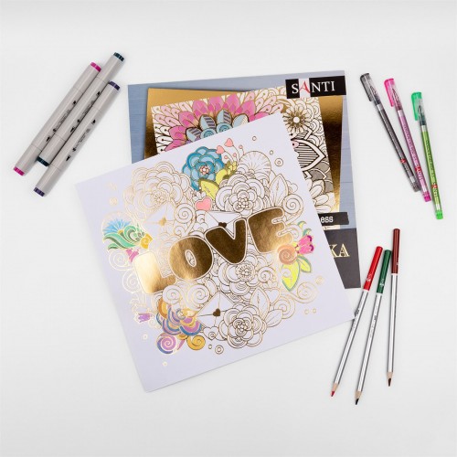 Життя сучасної людини сповнене стресами. Багато хто задає собі питання - як зупинитися, озирнутися і спокійно продовжувати жити. Є багато способів знайти душевну рівновагу. Але самий захоплюючий і цікавий - доторкнутися кольоровими олівцями до чудових візерунків від ТМ SANTI, оживити приголомшливий світ тварин і птахів, зануритися в чарівні візерунки мандал. Змахнувши маркером або олівцем, немов чарівною паличкою, будь-яка людина може відчути себе чарівником. Від всіх проблем не залишиться і сліду. Це і є справжня магія. Кожна сторінка має елементи з металізованої фольги. Формат: 25 * 25 см, внутрішній блок: 24 сторінки.