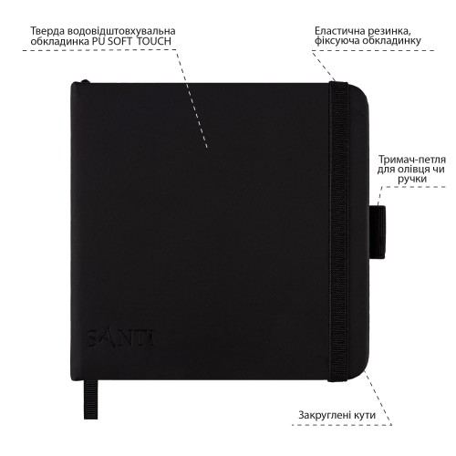 Скетчбук ТМ SANTI – чудовий вибір для створення ескізів у дорозі, етюдів на пленері та надійного зберігання ваших робіт! Тверда, водовідштовхувальна обкладинка з PU-матеріалу з ефектом SOFT-TOUCH захищає внутрішній блок та забезпечує зручність під час малювання. Петля-тримач для ручки або олівця гарантує, що ваш інструмент завжди буде під рукою. Всередині 56 аркушів чорного паперу щільністю 145 г/м². Завдяки безкислотному складу паперу, використаного в блокноті ТМ SANTI, ваші роботи збережуться на довгі роки. Гладка поверхня паперу з ледь відчутною текстурою забезпечує плавне ковзання олівця чи ручки по аркушу, що дозволяє створювати деталізовані й виразні роботи. Спеціально закруглені кути скетчбука захищають ваш рюкзак або сумку від пошкоджень, а еластична гумка-надійно утримує сторінки та захищає їх від зам’яття. Скетчбук ТМ SANTI підходить для роботи білою гелевою ручкою чи олівцем, спеціальними кольоровими ручками, олівцями або маркерами для малювання на чорному папері, пастельними крейдами чи олівцями тощо. Ідеально підходить для скетчингу, каліграфії, архітектурних ескізів та інших видів творчості. Компактний формат 13х13см дозволяє легко брати скетчбук із собою в подорожі або використовувати його у повсякденному житті. Щоб ваш скетчбук дістався до вас у ідеальному стані, кожен екземпляр ретельно упаковується в термозбіжну плівку. Колекція скетчбуків ТМ SANTI представлена у різних форматах, що дозволяє підібрати ідеальний варіант для будь-якого завдання. Основні характеристики скетчбука ТМ SANTI: - розмір: 13 х 13 см - кількість аркушів: 56 - щільність паперу: 145 г/м² - склад паперу: 100% целюлоза - колір паперу: чорний - тип палітурки: книжковий - обкладинка: тверда PU з ефектом SOFT-TOUCH - фіксатор: еластична гумка - петля-тримач для олівця чи ручки - закладка-лясе - закруглені кути Від швидких ескізів до деталізованих ілюстрацій – альбом ТМ SANTI стане вашим надійним помічником у будь-якому творчому проєкті!