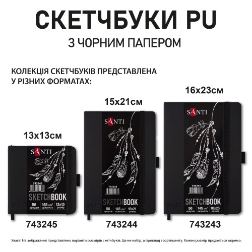 Скетчбук SANTI для графики с черной бумагой 13x13см 56 л. твердая обложка PU 145г/м2