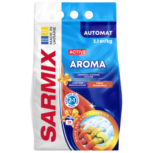 Пральний порошок SARMIX універс. 2100г Active Aroma, д/всіх видів білизни (6)