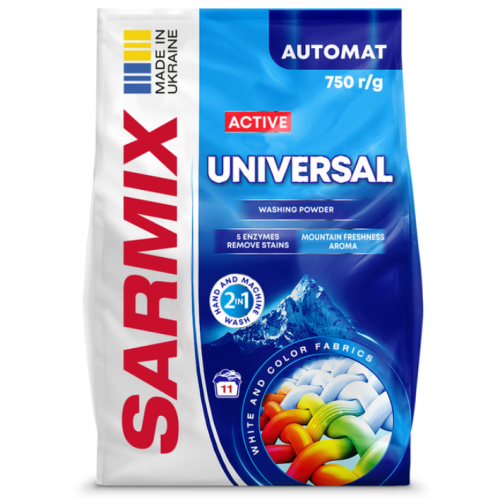 Пральний порошок SARMIX універс. 750г Active Universal, д/всіх видів білизни