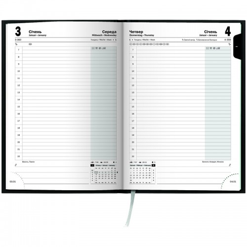 Особливості: Три мови: українська, англійська, німецька. Загальна кількість сторінок — 336. Одна сторінка — один день.
