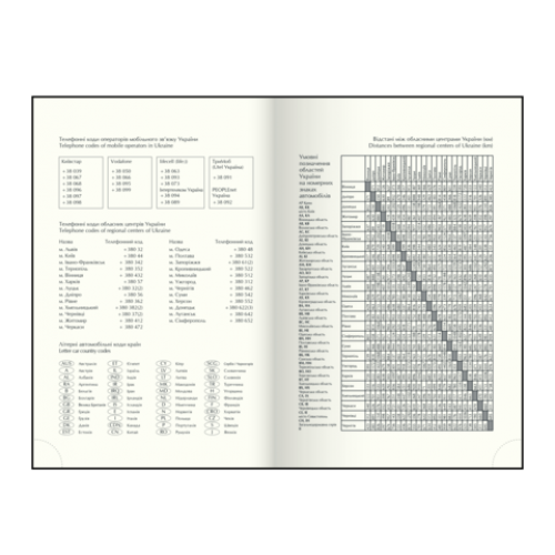 Інформаційно-довідковий блок: телефонні коди мобільних операторів та обласних центрів України, літерні автомобільні коди країн, таблиця відстаней між обласними центрами України, довідник систем вимірювання, міжнародні знаки відповідності, знаки догляду за одягом